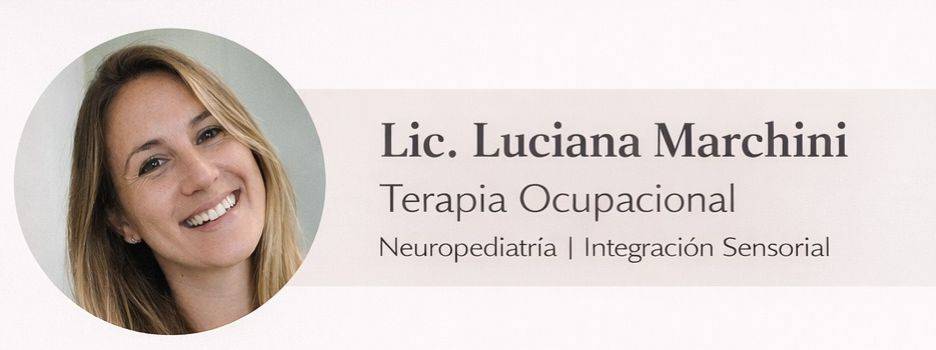 Luciana Marchini. Licenciada en Terapia Ocupacional egresada de la Universidad Nacional del Litoral. Área de desempeño en neuropediatría e integración sensorial. Diplomada en Trastorno del Espectro Autista. Formación en evaluación del comportamiento adaptativo mediante Vineland. Especialización en Integración Sensorial. Capacitación en psicología positiva y mindfulness, abordaje de desafíos en la alimentación, estrategias de regulación y orientación a padres.