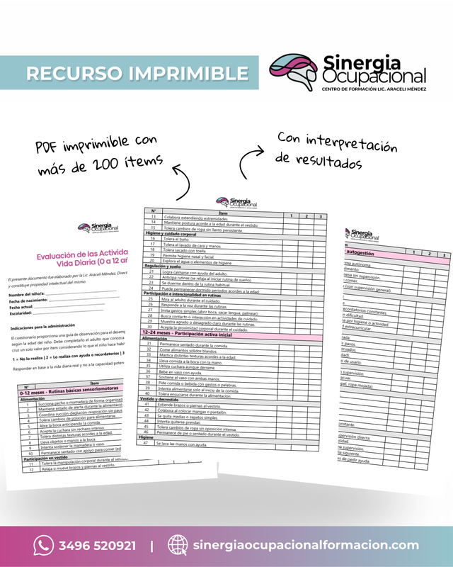 En Terapia Ocupacional y otras disciplinas de salud y educación, la evaluación de las Actividades de la Vida Diaria (AVD) suele apoyarse en instrumentos estandarizados como el Índice de Barthel o la WeeFIM. Si bien estas herramientas resultan valiosas para medir niveles generales de independencia funcional, en la práctica cotidiana pueden no ser suficientes para orientar una observación detallada y evolutiva de las habilidades esperadas según cada etapa del desarrollo. Su carácter sintético y su amplitud etaria limitada dejan por fuera matices relevantes del desempeño ocupacional infantil.